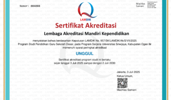 SelengkapnyaSertifikat Akreditasi Program Studi PGSD FKIP Universitas Sriwijaya (2025-2030)
